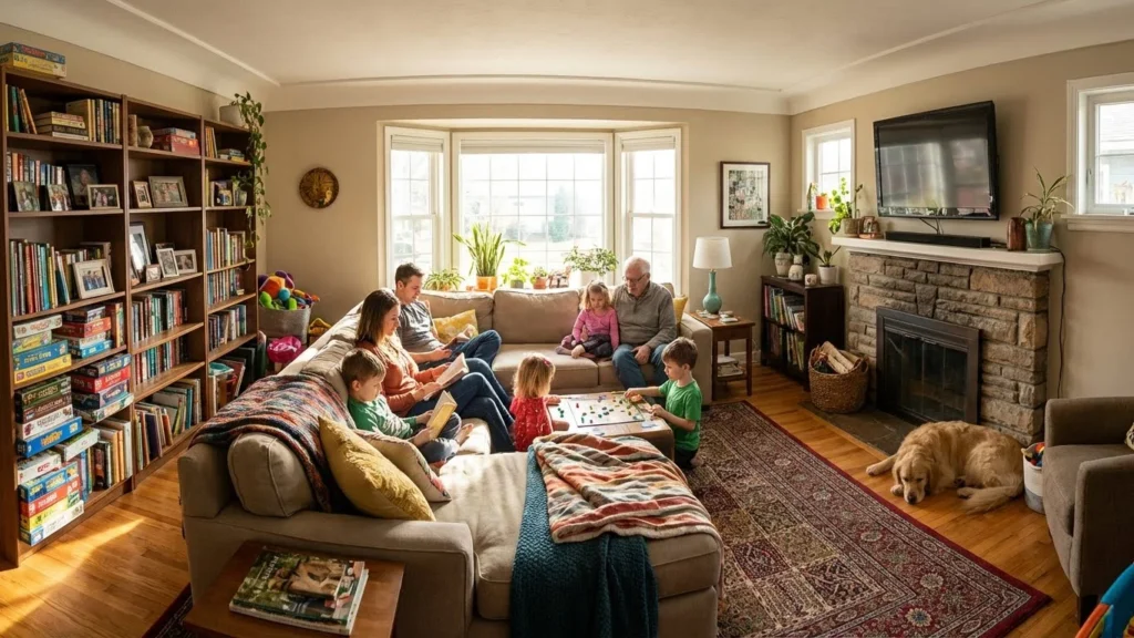 Family living rooms are made for shared moments and laughter. Comfortable seating allows everyone to gather together. The space is practical yet welcoming. It holds memories and traditions. Children, adults, and guests all feel comfortable. It is the heart of family life.